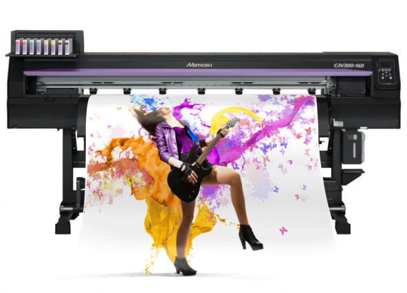 Mimaki CJV300 Series wide-format, high-speed eco-solvent printer/cutter devices go beyond extraordinary to deliver an amazing array of applications. Eco solvent inks in a variety of colors – including Silver – and advanced printing technologies means you can produce anything from fine art reproductions to outdoor signage. And, with precision cutting capability on board you can go beyond posters and banners to deliver complete campaigns that include prints for small or large labels, decals and even T-shirt transfers. Employing the Mimaki CJV300 Series printers’ superb quality, color fidelity, throughput and contour cutting then printing flexibility, you’ll go beyond the expected to capture more wallet share and deliver whatever your customers can imagine.