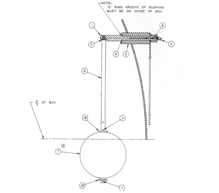 6” stainless steel float ball with 1/2” bore tube to connect onto a slide rod to monitor debris tank capacity used in the debris tank in Vactor®, Guzzler® and Vac-Con® type machines. Made in the USA. For more product options, please see our Parts List Sheet.