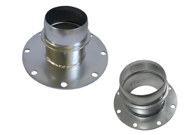 This specially-designed aluminum fitting clamps to an 8” flange and welds to a 6” aluminum tube on the opposite end. Maintains airflow efficiency by design. For more product options, please see our Parts List Sheet.