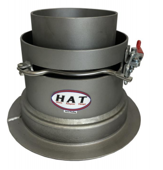AN EFFICIENT WAY TO SECURE 6” ADS 6” KANAFLEX® STYLE (SPIRAL) SUCTION HOSES 8” FLAT FLANGE and B-LOK TO 6” HOSE *Attaches to the truck in seconds.*Works with 6” Kanaflex® Style Hose.*Cures all the headaches from Duct tape! *Safer and more secure connection.*Durable and long lasting material.*Look at all the time you’ll save from using the HAT!*Works with 6” drain tile and suction hoses. *Not to be used on cuffed debris hose.*Requires no tape, no tools.*Prevents outward spray ASPC Patent # 10.024.044 B2 For more product options, please see our Parts List Sheet.